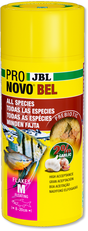 JBLDhs. 61.01Size: 1000 ml Aquarium main food flakes in size M for all ornamental fish from 8-20 cm Prebiotic aquarium fish food with garlic: dedicated dieta...